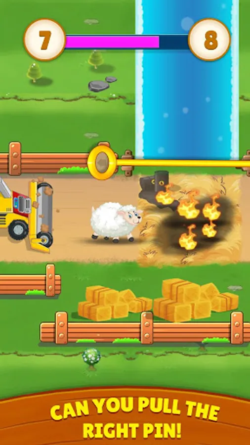 Your mission is simple, pull the pin & save the sheep from wild animals and help them reach the fields