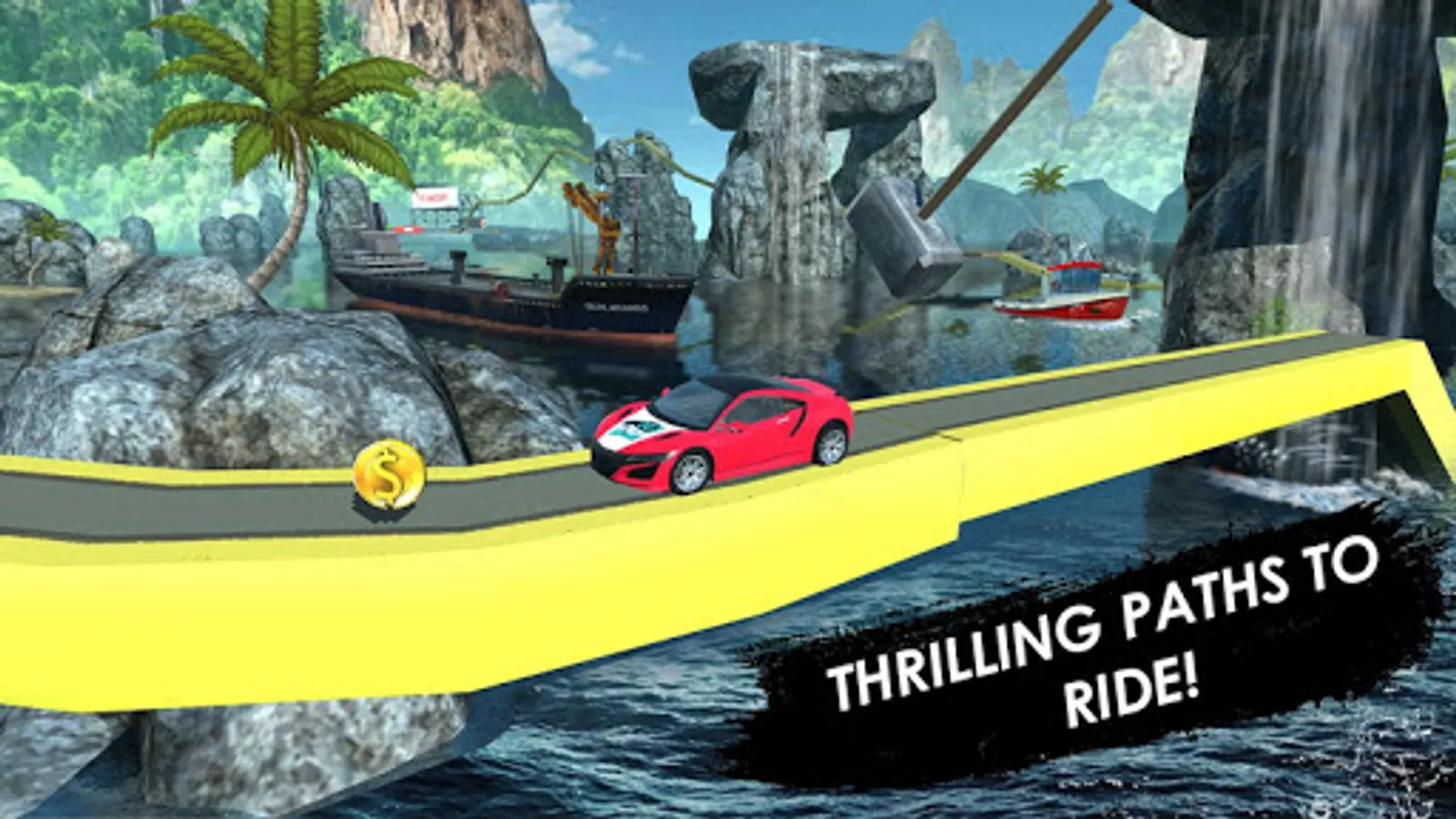 Be very careful while taking the sharp curves. You have to slow down in-between as crossing the obstacles, don't over speed your car or bike, it may skid on the narrow path and you may fall into the water depth. In this extreme stunt ramp game, exciting and risky levels has been designed to make you expert racer and stunt master on the dangerous water paths.