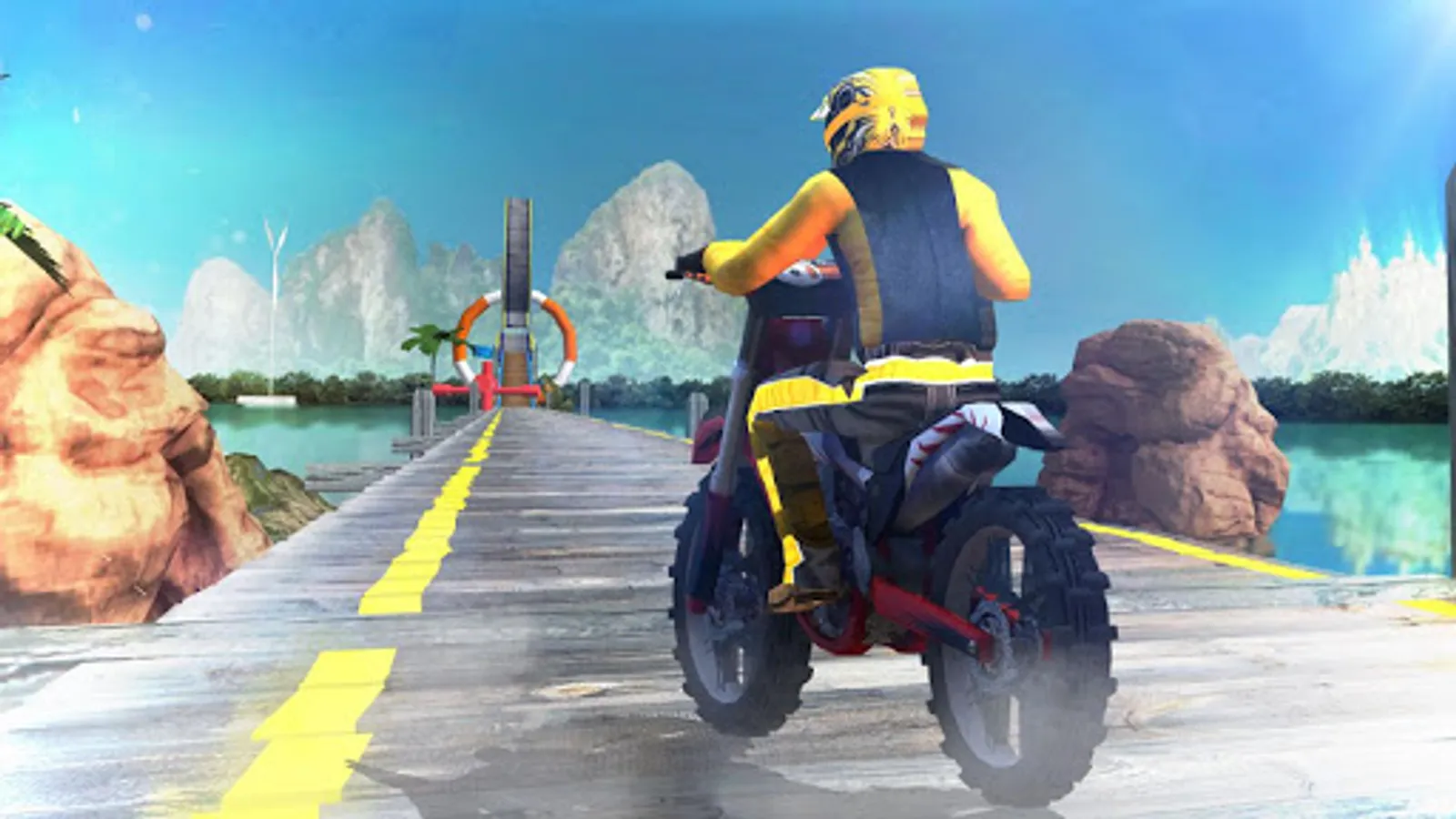 Drive sensibly and do not hit any vehicles and race track. Trip your bike on endless track in amazing environment , perform dazzling stunts and long jumps. Be careful of your heavy bike because the way is filled with sharp turns, obstacles and epic loops. Do exciting mid-air stunts, tricks and huge roof jump through the racing track against challenging racers. This game contains fascinating levels with challenging missions . The Amazing and outstanding environment with beautiful beach, blue water lakes, ocean makes you perform rough and insane stunts. keep your skills sharp. Be ready to play and Improve your powerful riding skills.
