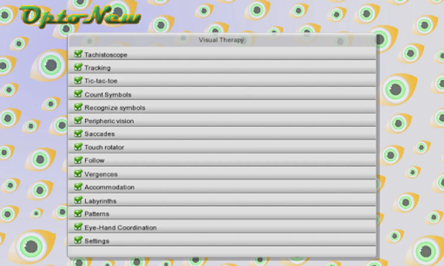 This application is designed for the realization of vision therapy supervised by Opticians-Optometrists.