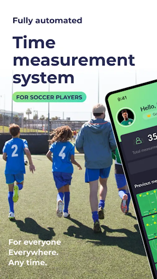 Introducing a time measurement app that makes training for soccer skills a fun and engaging activity with friends. With over 10 standardized exercises to choose from, with or without a ball, you can test your agility, speed, ball control, and more. The app provides you with detailed results from your training, allowing you to practice the same exercises at home and improve your performance.