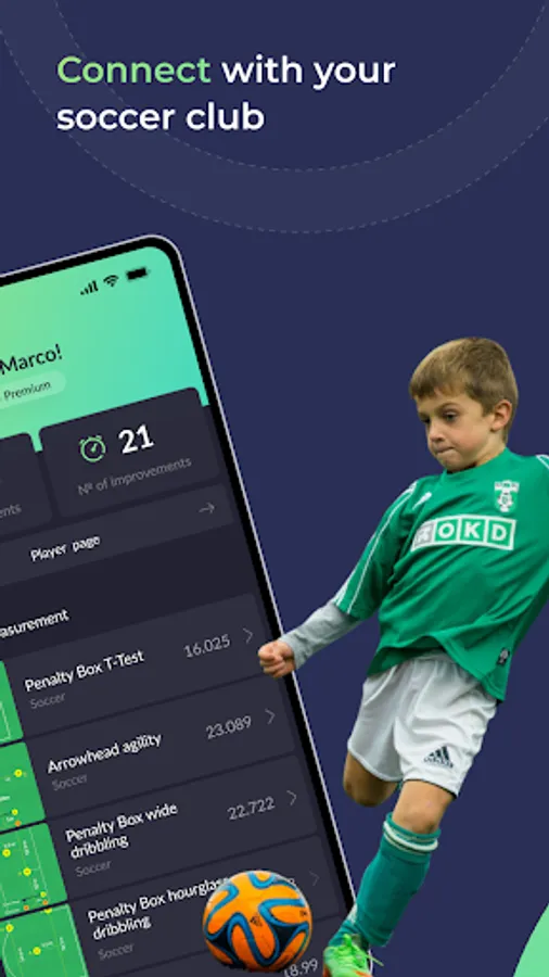 Introducing a time measurement app that makes training for soccer skills a fun and engaging activity with friends. With over 10 standardized exercises to choose from, with or without a ball, you can test your agility, speed, ball control, and more. The app provides you with detailed results from your training, allowing you to practice the same exercises at home and improve your performance.