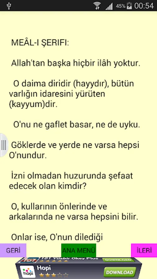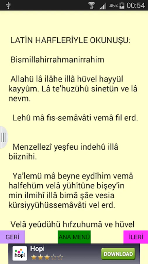 When Ayetel Kürsi of that clicked on the first page of text on-screen control panel bottom of the page is opened.