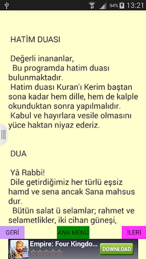 The program has provision prayer Hatim prayer and blessing prayer. There is also the hadith related to fertility.