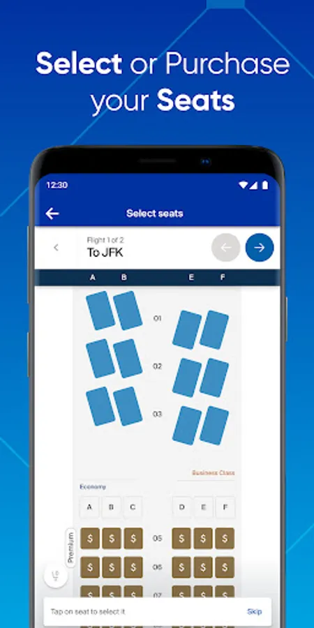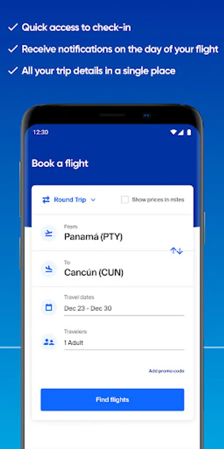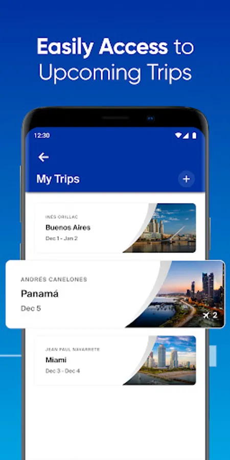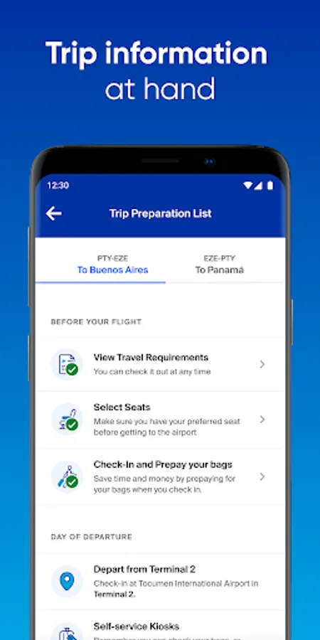 Keep track of your upcoming trips, view all the details and updates of your flights, and access useful functionalities at the right time, such as: