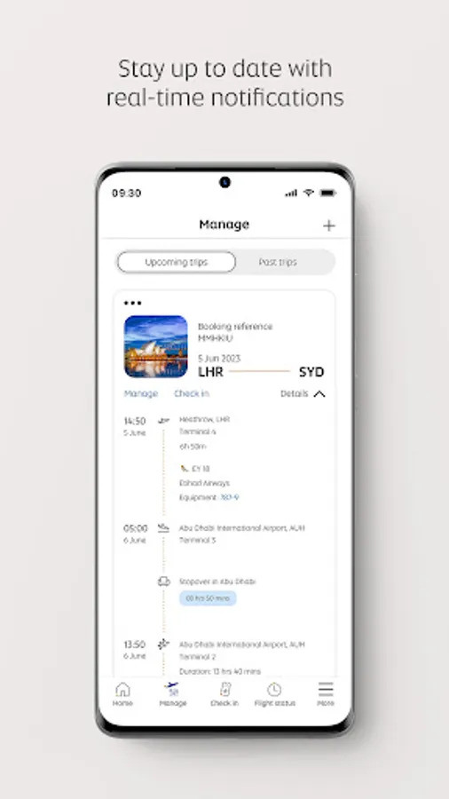 Download the Etihad Airways app for seamless travel at your fingertips. Book and manage your booking, save your boarding pass to your phone for peace of mind, pick your favourite seat, easily share your trips on social media and stay up to date with real-time flight updates, personalised offers and destination guides with smartwatch notifications on the go.
