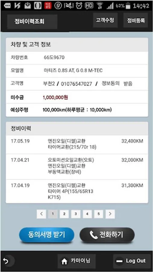 - 고객 정보와 정비이력 정보를 한꺼번에 보실 수 있고