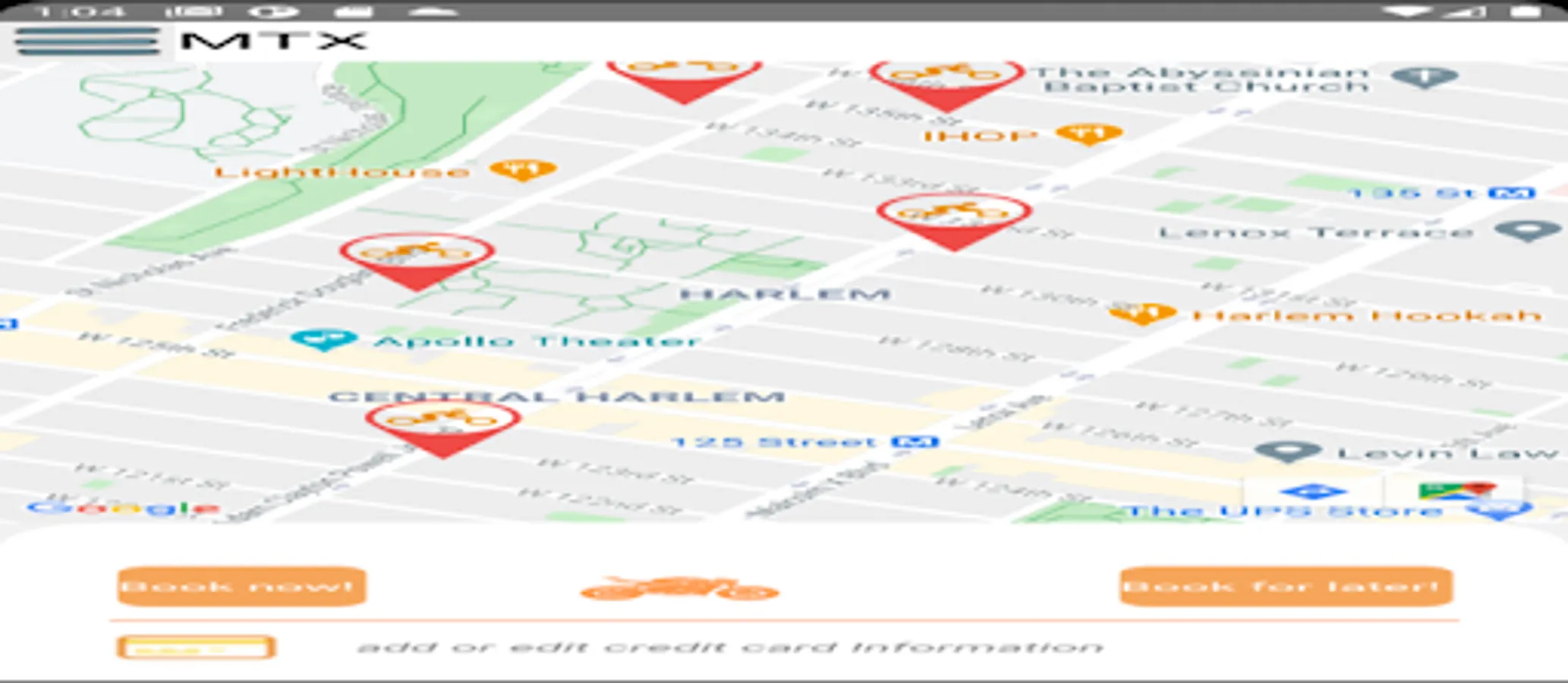 Locate electric bike with the geolocation feature enabled in the app. Click to pay on the bike you would like to rent. After successful payment, receive a code to start the bike. When you are done, click the finish button and show the location of the bike. You will be billed for the entire ride.
