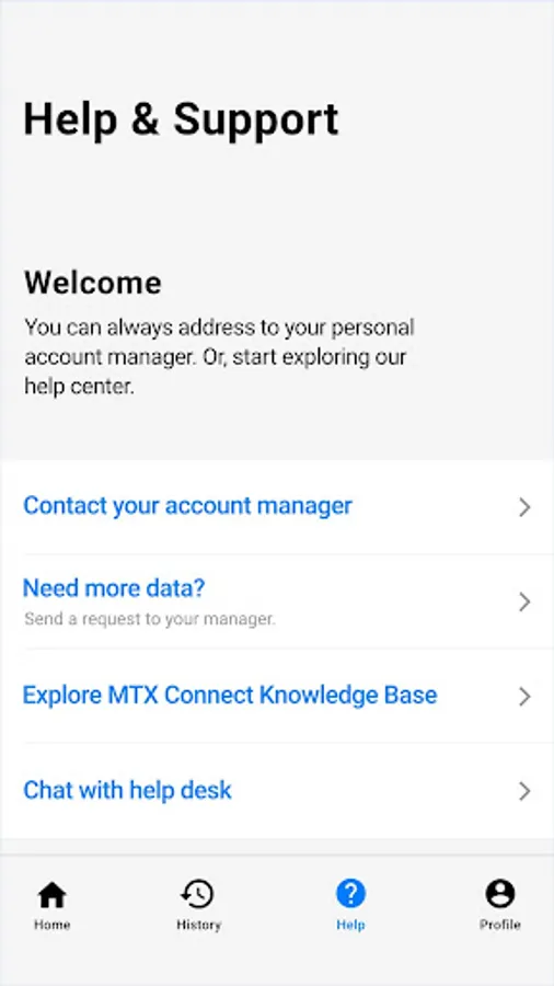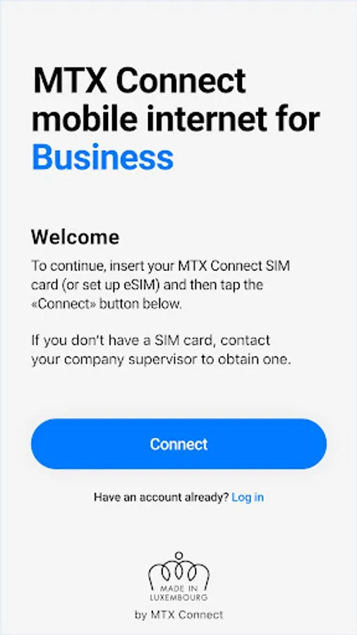 MTX Connect Business app allows traveling or teleworking employees connected with MTX Connect SIM/eSIM to monitor their mobile data consumption, request more data from your company’s account manager, access MTX Connect knowledge-base or get online assistance from the support team.