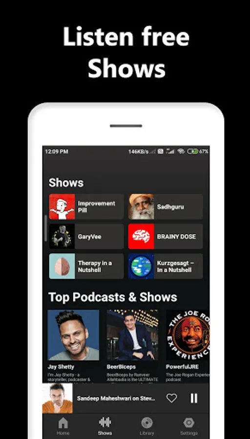 With Snoofy, you can access a lots of free playlists and shows that helps you in self improvement, Business, Skills, Health, Fitness, Fashion, Facts and Mysteries, News and Politics, Knowledge, Comedy, Psychology etc.