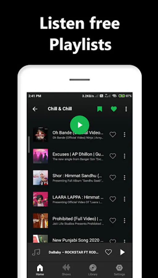 - Enjoy a lots of playlists like Chill & Chill, Just Released, Fresh Beats, Family