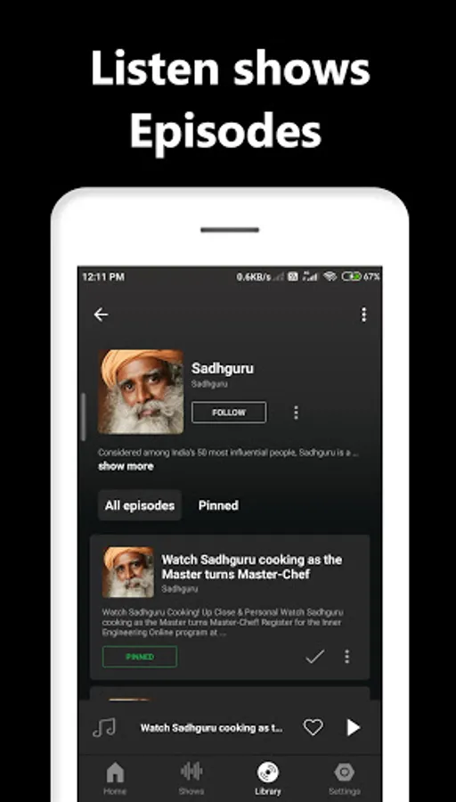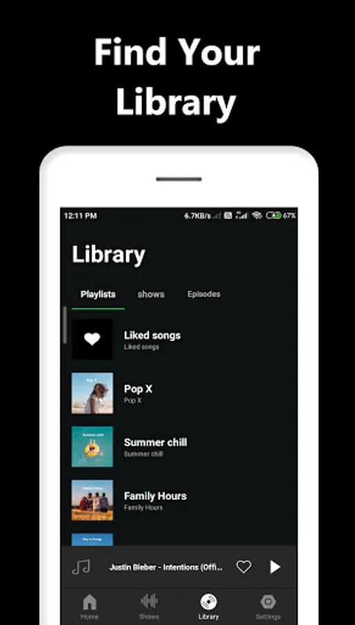 With Snoofy, Easily find your favorite music videos, shows and episodes, liked songs, pinned and liked episodes in Library. Pinned your favorite shows episodes and access them in one click in Pinned section of Shows.