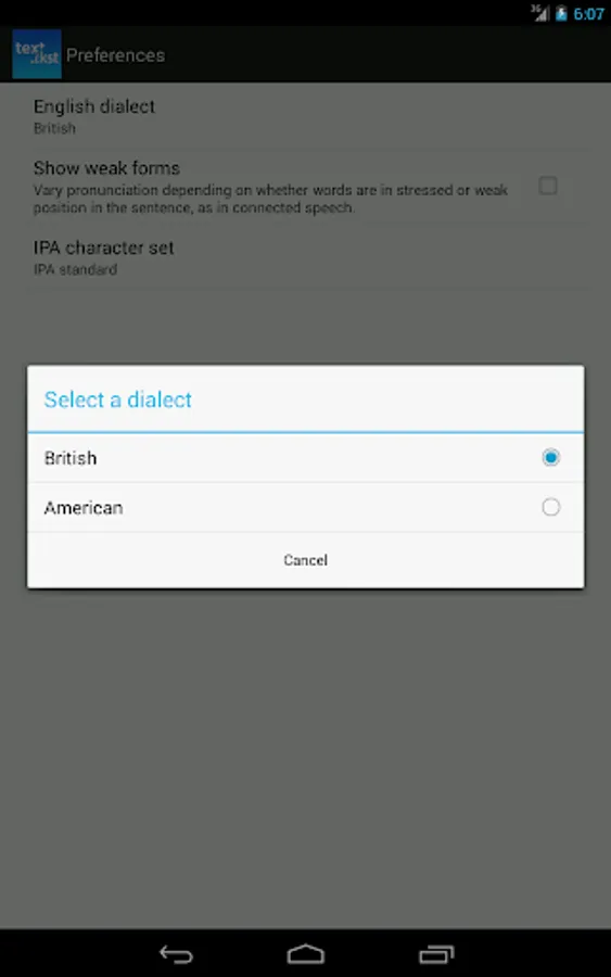 - Choose between British and American* pronunciation. When British dialect is selected the [r] sound at the end of the word is only voiced if followed by a vowel, which follows British phonetic convention.