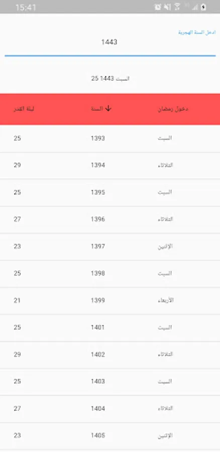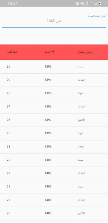 A table that specifies Laylat al-Qadr in past years and in years to come
