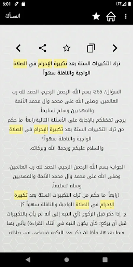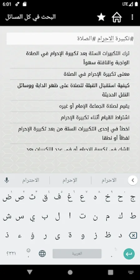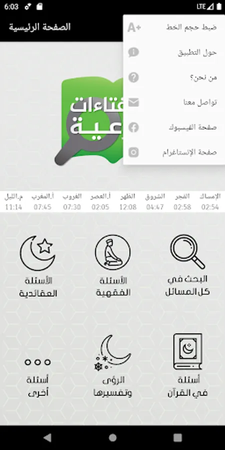 التطبيق يحتوي على: المسائل العقائدية، والفقهية، الرؤى وتفسيرها، ومسائل أخرى.