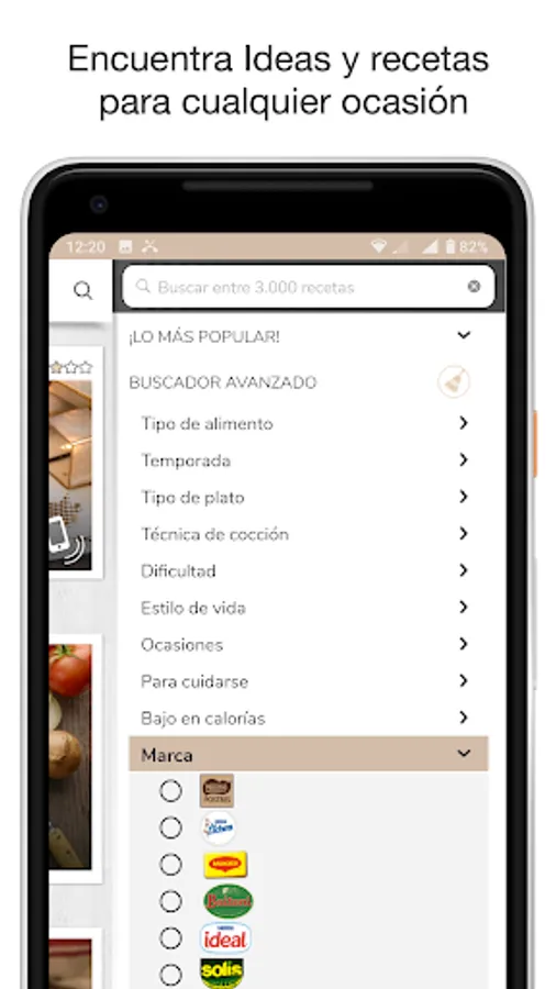 • Use the search criteria that will allow you to select the appropriate recipe for each moment and personal need (nutritional value, preparation time, special dates ...)