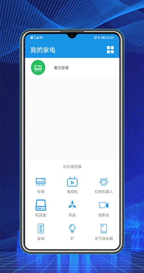 Universal remote control provides a large number of remote control configurations, including many home appliance brands, including various remote controls, such as air conditioners, TVs/set-top boxes, boxes, electric fans, and projectors