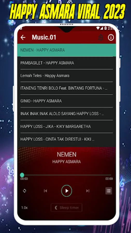 The Happy Asmara Nemen Viral 2023 Music Player application is a music player application for dangdut songs, the best full bass campursari songs, which provide viral dangdut songs and popular dangdut songs that are most often listened to by music lovers.