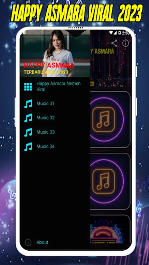 We made the Happy Asmara Nemen Viral 2023 music player application to help you listen to various kinds of music. All the latest Dangdut Koplo and Dangdut Viral songs, of course, this application can be used offline, this application is perfect for listening to every day because this application contains a full collection of Dangdutj songs. bass, dangdut koplo and many more dangdut songs that are nice to hear, this application is also very light and easy to use, please download this application and listen to music to your heart's content with clear audio quality