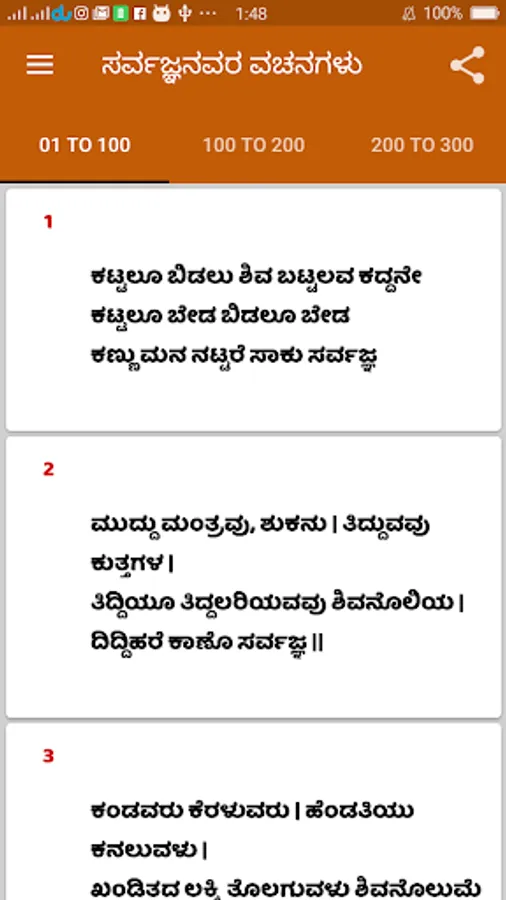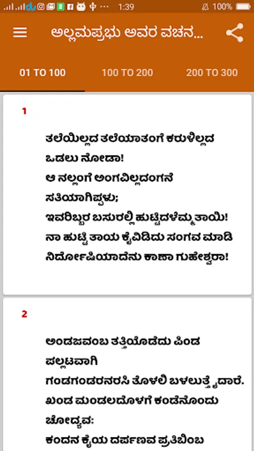 This Application is for the people of Karnataka In this app 1500 different types of Vacahanas and Also Gaade matu are there, all Gaade maatu and Vachanas are in Kannada
