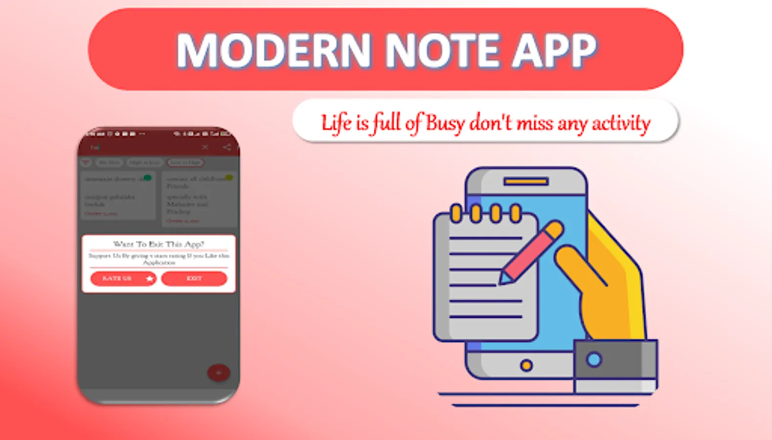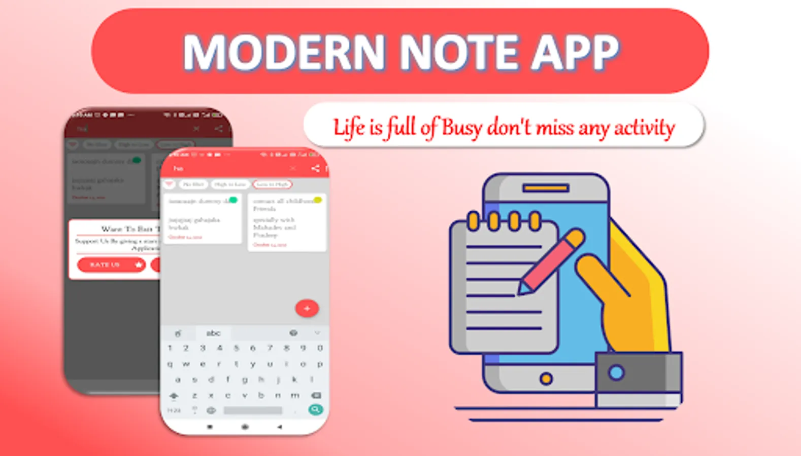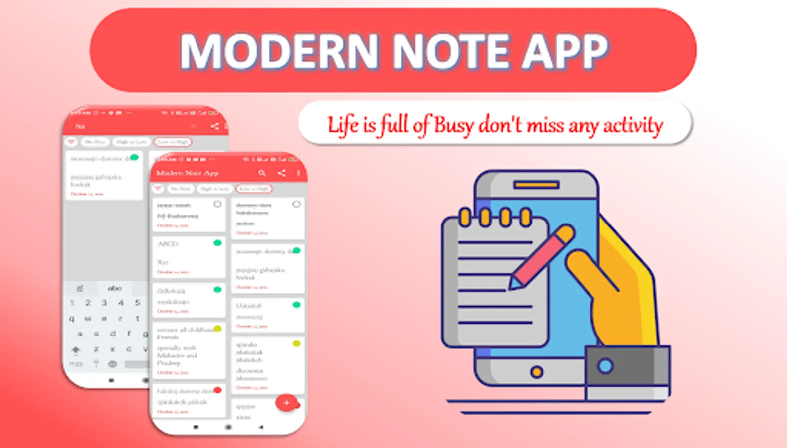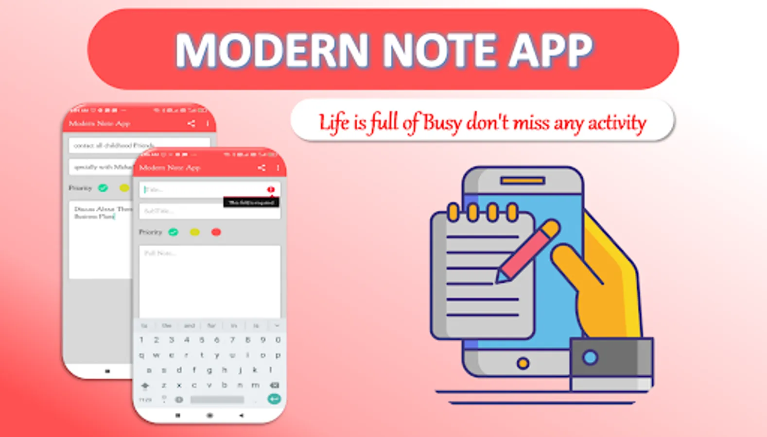 As Name indicates this is the modern Note taking app, in this you can easily Create Notes, Edit Notes, Delete Notes and You Can set Priority also like green Priority, yellow priority or red Priority and more amazing priority option is available in this app that’s No priority.