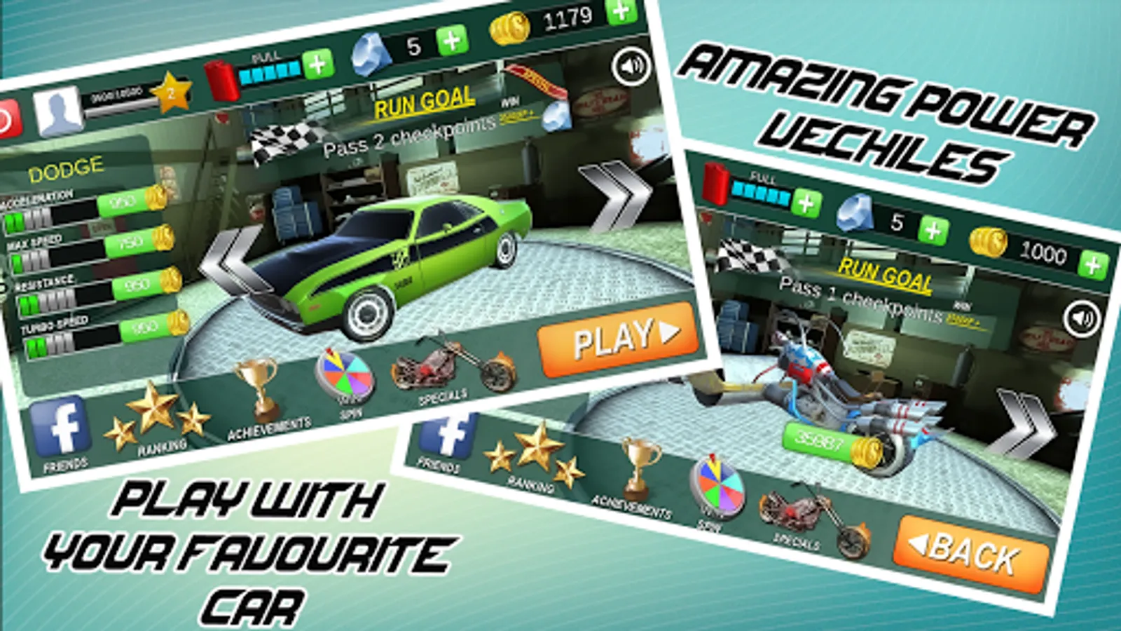 Ride with style: your style! Choose your car from a large fleet, then upgrade your ride to make it even faster and stronger.