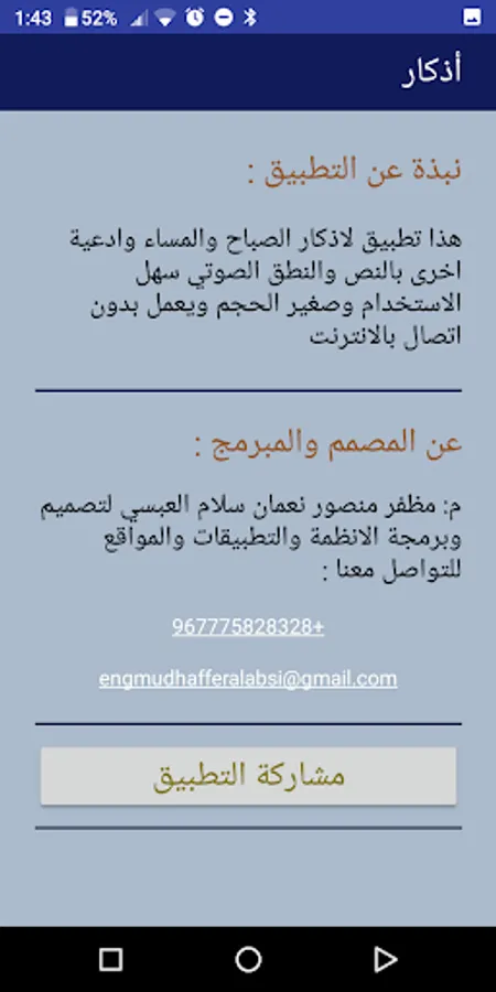 An application that contains Muslim supplications, which are morning and evening supplications, supplications and other supplications written and recorded in the voice and arranged in the application in a consistent manner and appropriate colors and comfortable to the human eye ... The application was designed on several easy-to-use and light interfaces on phones and this application also works without internet connection and does not contain any ads Promotional We ask God to put this in the balance of our good deeds, your good deeds, and that of your parents and your parents
