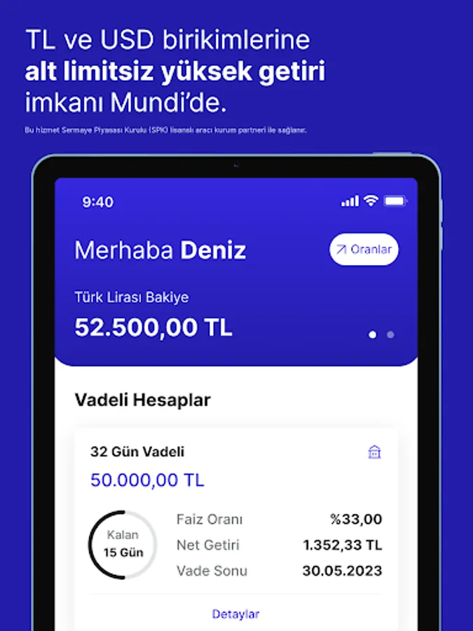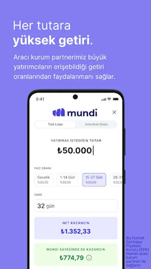 - Thanks to Mundi, your TL and USD savings are valued in the capital markets, and the balances are valued at the banks at the maturities you choose.