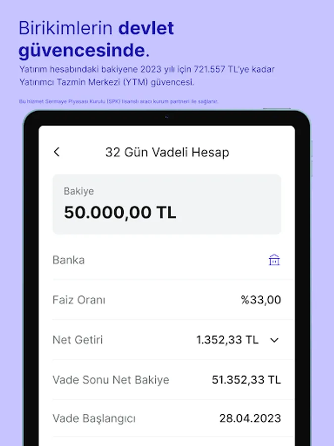 - Up to TL 721,557 of the balance in the investment account for 2023 is under the guarantee of the Investor Compensation Center.