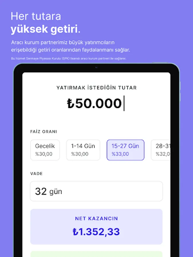 - You can reach the same high rate of return for 10 TL or 10.000.000 TL without a lower limit.