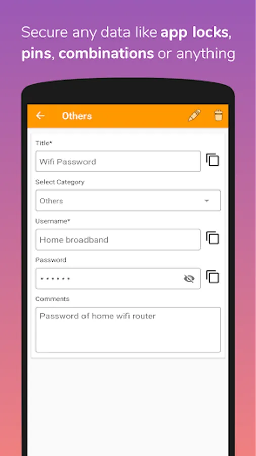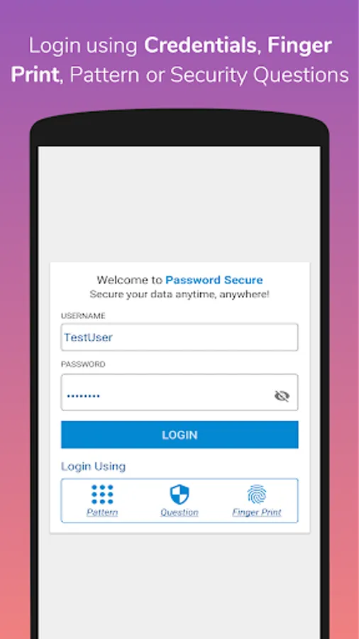 MULTIPLE LOGIN options make you relaxed as you need not to just rely on the master password of this app. You can login via your master password, patterns or combination of security questions. Remember any of them and you can enter the app.