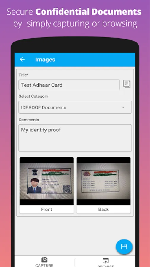 With Password Secure all your data is ENCRYPTED and gets stored in the phone's memory. You can even capture or browse IMAGES and store those in your phone.