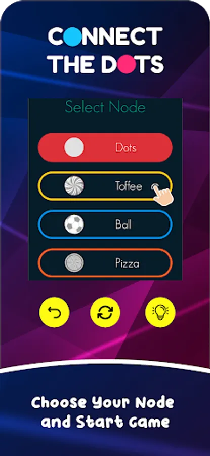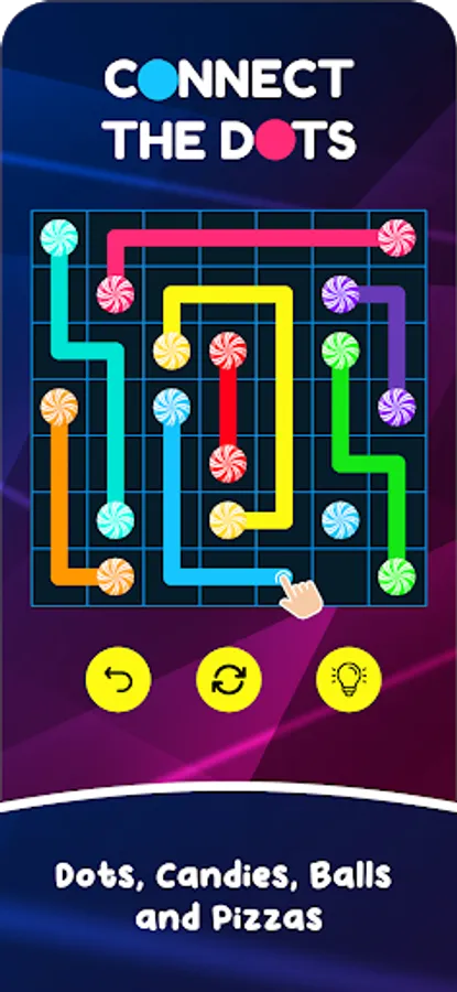 Connect The Dots consists of Dots, Candies, Balls and Pizzas. Make your choice and start the game by choosing the point type. You can play both vertically and horizontally.