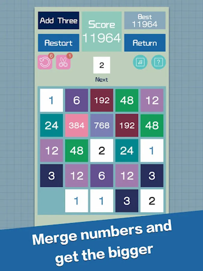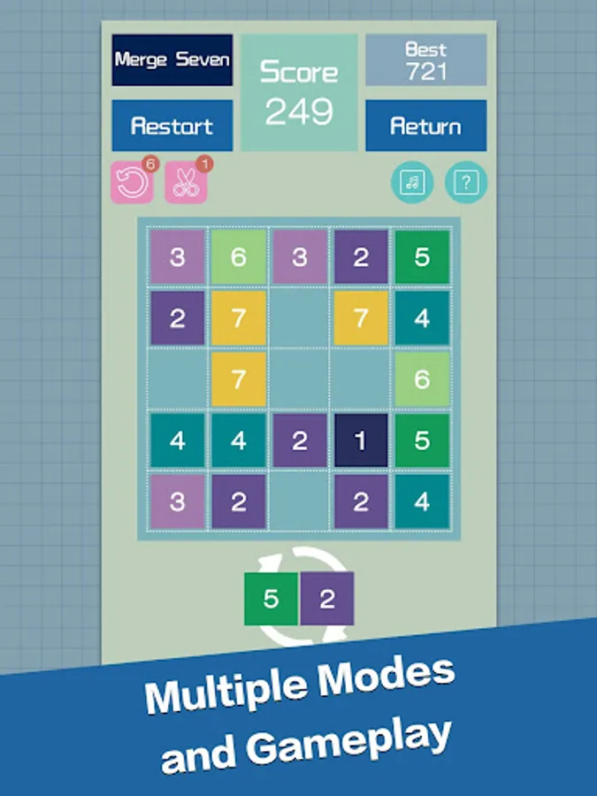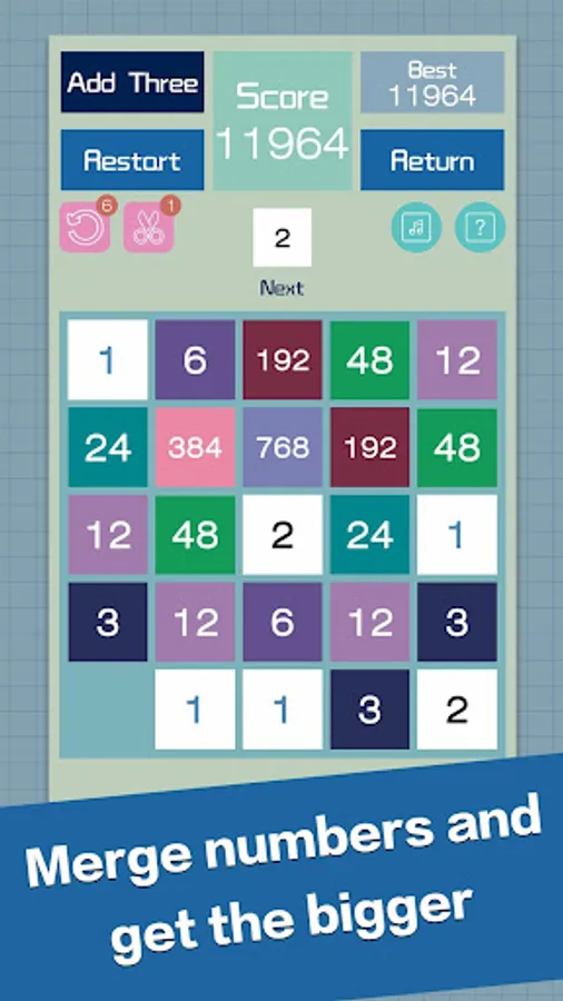 2. This game provides six modes: Plus One, Match Two, Add Three, Merge Seven, Make Ten and 2N. Each mode has a unique gameplay.