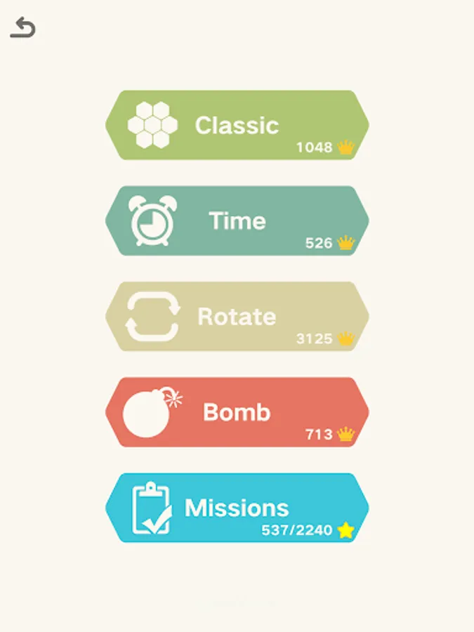 5. Each mode has five sub modes: Classic, Time, Rotate, Bomb and Missions.