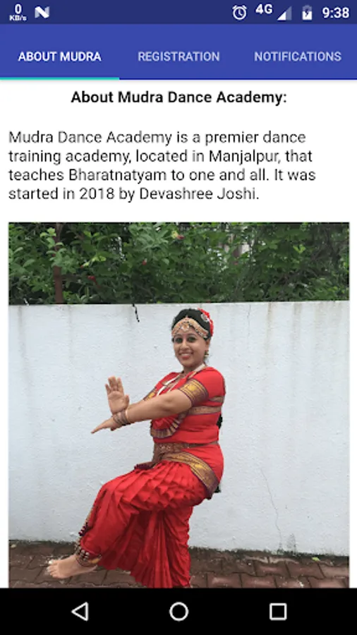 Mudra Dance Academy App is for the students/parents of Mudra Dance Academy.