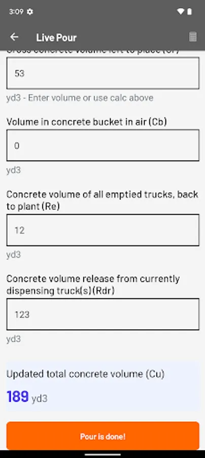 Each year, 2% to 10% (average of 5%) of the estimated 455 million cys produced nationwide is returned to the concrete plant or dumped in the landfill. Let Mudright help you reduce waste and stress with our innovative "Live Pour" calculator.