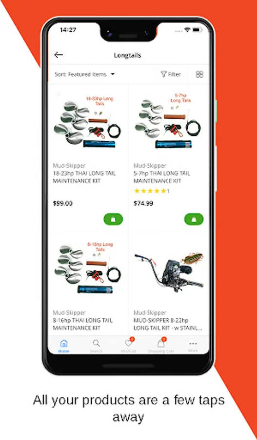 Browse our online catalog of Longtails, Twisters, Surface Drives and accessories from anywhere. Place orders and check your order status. Got questions? Contact us right through the app.