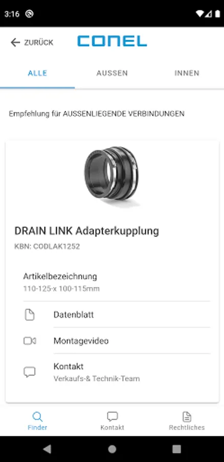 Finding the right adapter for the respective drainage system is now easier than ever. Simply enter the characteristics of the pipes to be connected in the DRAIN LINK PRODUCT FINDER from CONEL - and the product finder will find the right adapter.