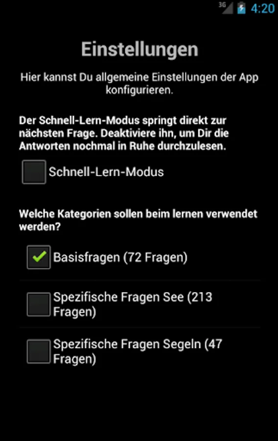 "Green" issues are no longer displayed in the further course of the learning mode, so that you can fully concentrate on the questions that you still have to learn.