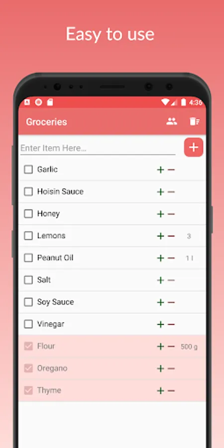 No bloat, just an app that replaces your shopping list. Sharing lists with contacts allows for simultaneous adding, editing and checking off of items.