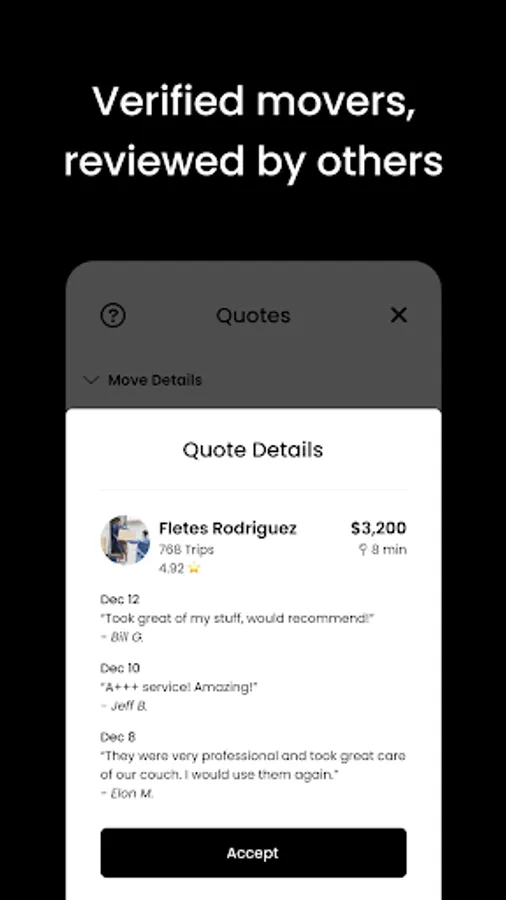With Mueve, you no longer have to deal with the hassle of finding and negotiating with movers in person. Our app takes care of everything for you, from matching you with the right movers to tracking your shipment in real-time. And the best part? You can even pay for your move using your credit card, making the entire process seamless and hassle-free.