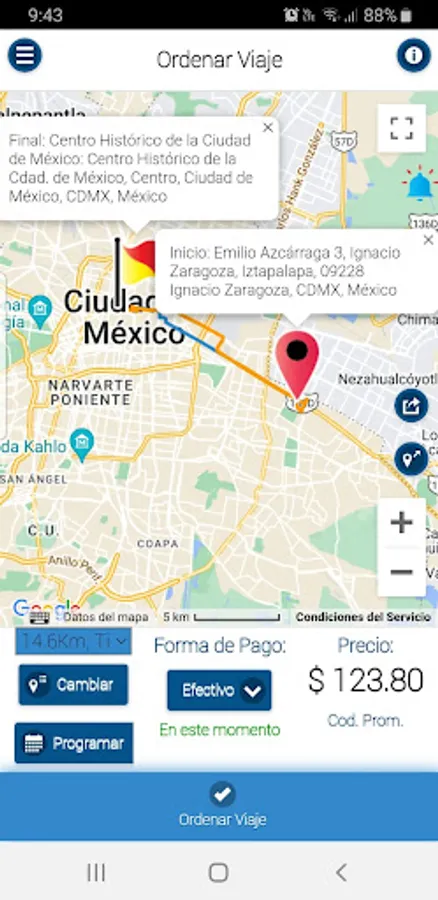 Travel to the desired place from the Muévete MX Application.