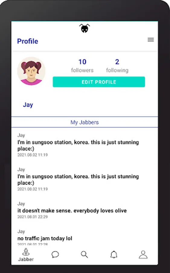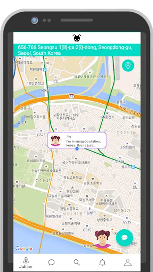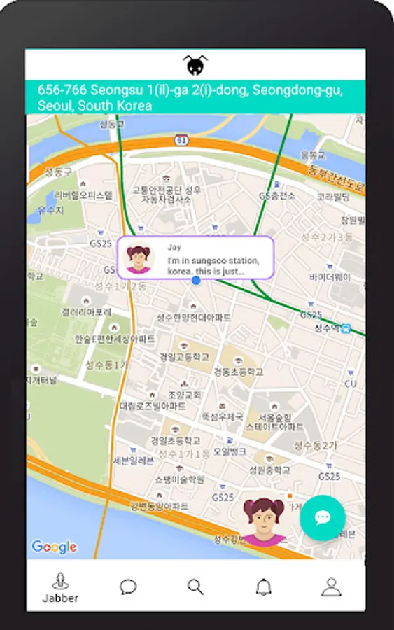 Once you click "Jabber" button, it will show your comment on the map. which followers can check for 1 hour