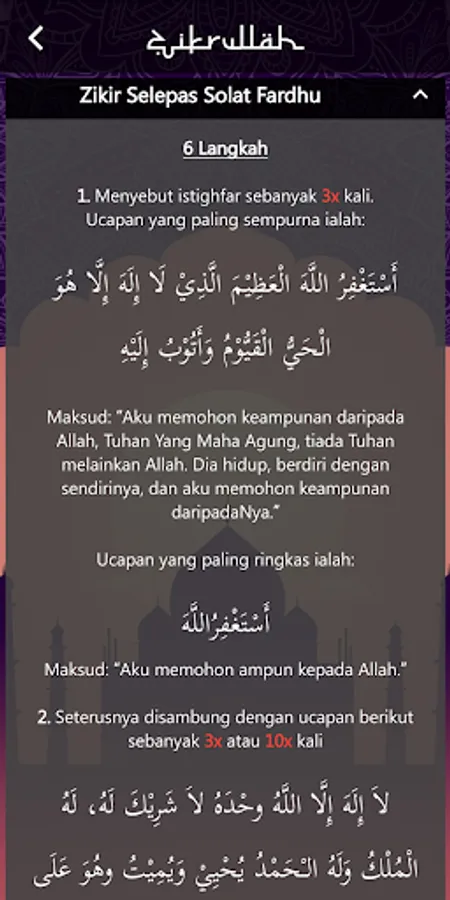 In general this application contains recollections after the prayer, Insha Allah in the future, will be improved with Al-mathurat compilation.