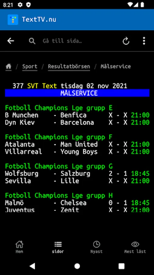 With the app from TextTV.nu you get: