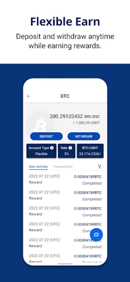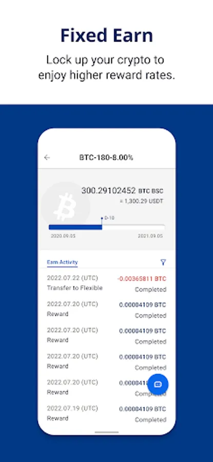 •Set your own duration in Earn Fixed, or give yourself the freedom to withdraw anytime with Earn Flexible.