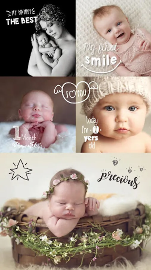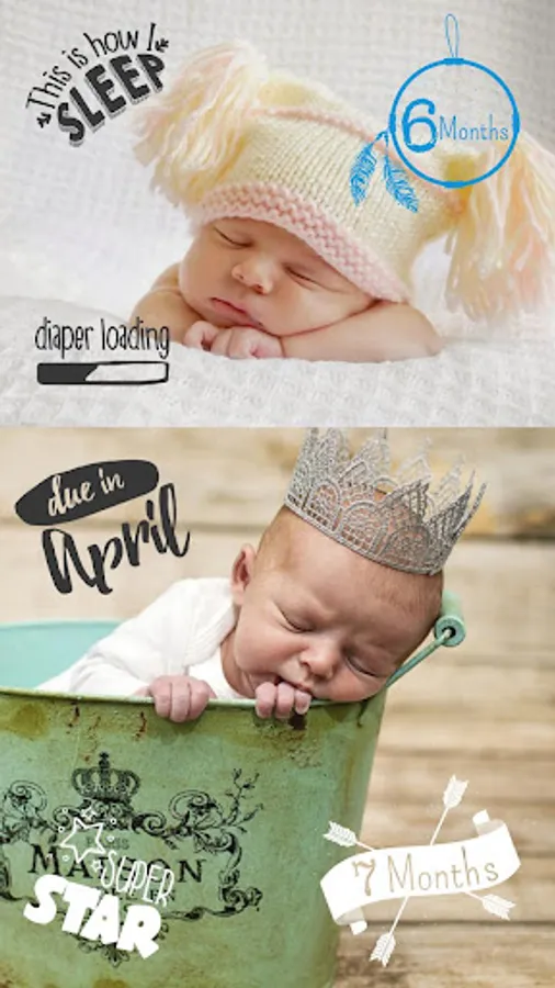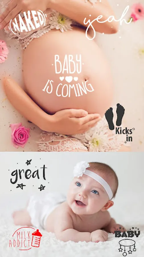 Baby Story Photo Editor is treasure to your precious pregnancy and baby milestone pictures by beautifully stickers and multiple personalized text.