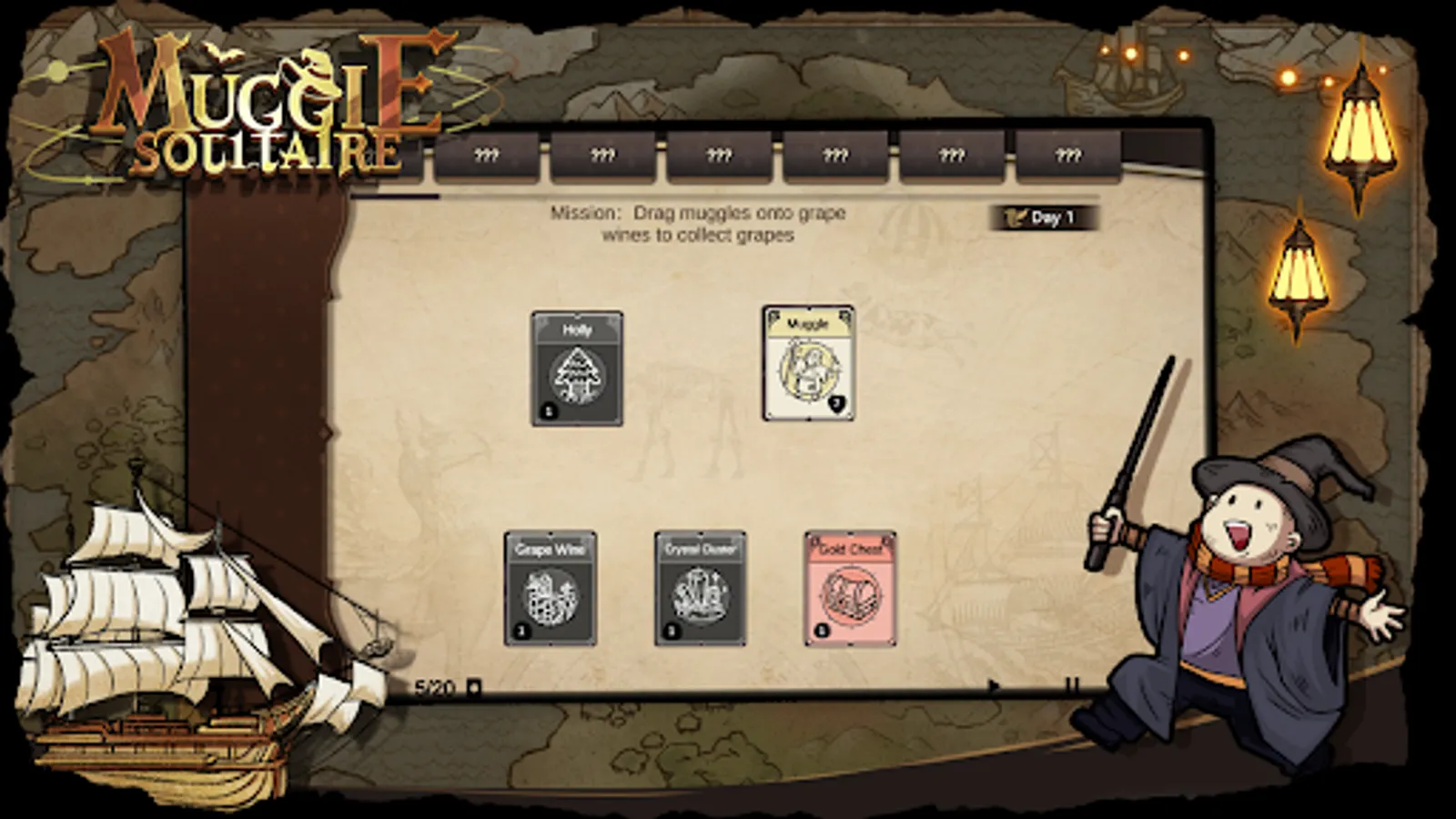 How to play: Drag muggles onto plants to produce food (grapes, mangoes, or others) that villagers can eat to survive, and you can sell them