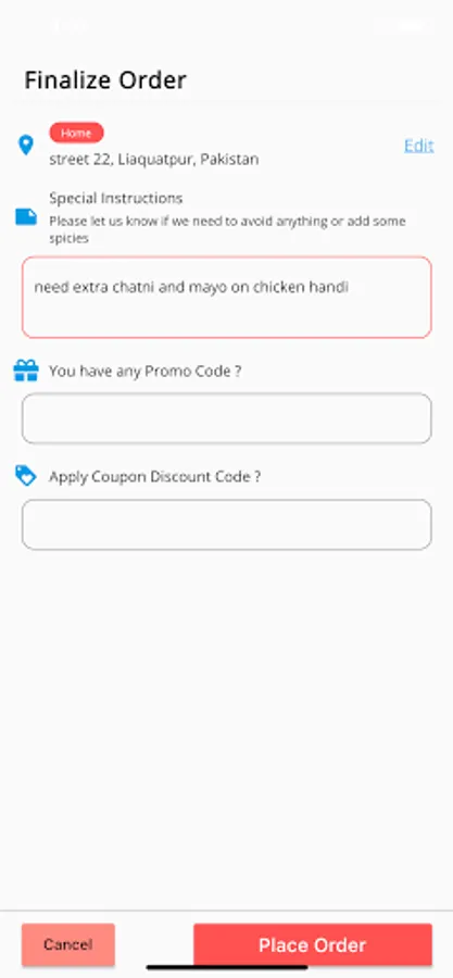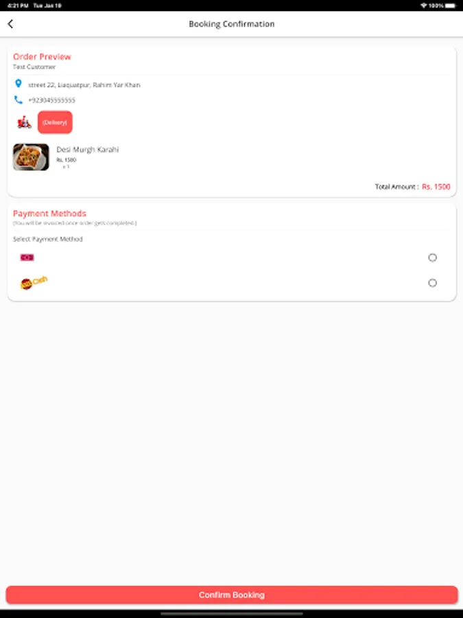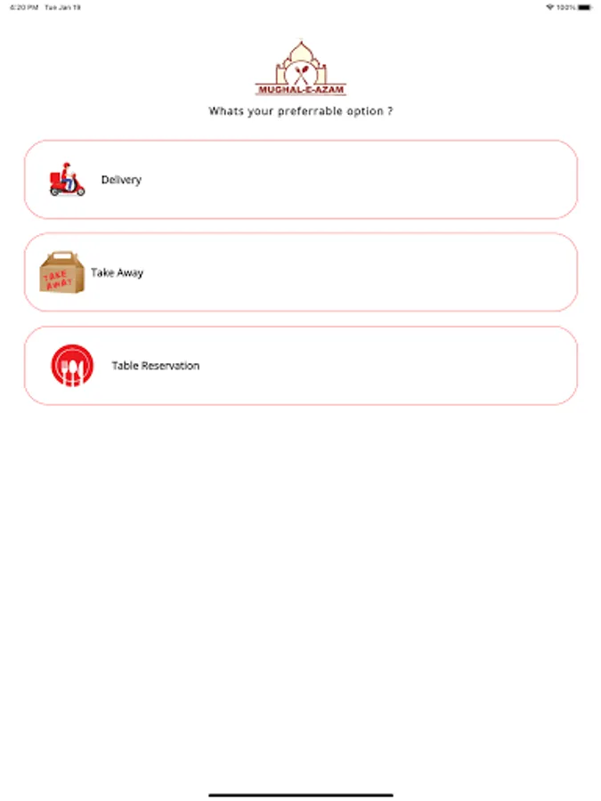 You can select between multiple options that how you want your order to be served (Delivery, Take Away or DineIn)
